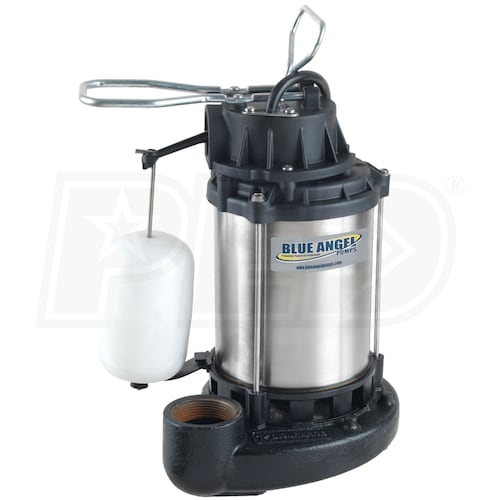 Blue Angel Pumps - 1/3 HP Stainless Steel / Cast Iron Submersible Sump Pump w/ Vertical Float Switch