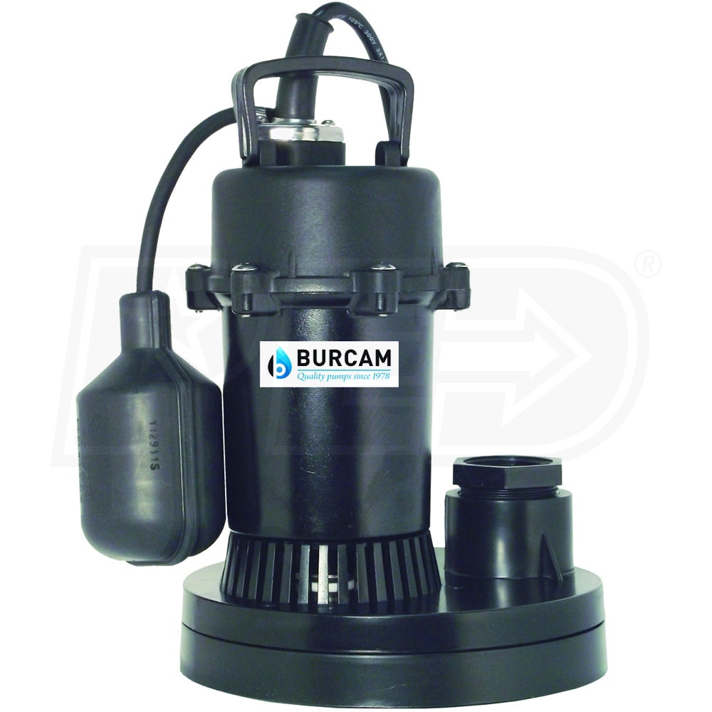 Burcam Pumps 1/3 HP Thermoplastic Submersible Sump Pump w/ Tether Float Switch