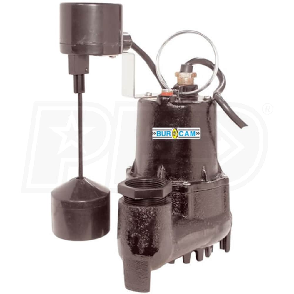 Burcam Pumps 1/3 HP Cast Iron Submersible Sump Pump w/ Vertical Float Switch