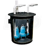 Little Giant 10S-DPLX - 1/2 HP Cast Iron Pre-Packaged Duplex Sewage Pump (10SC-CIM) System w/ PB Tether Floats (24" x 36" - Structural Foam Basin)