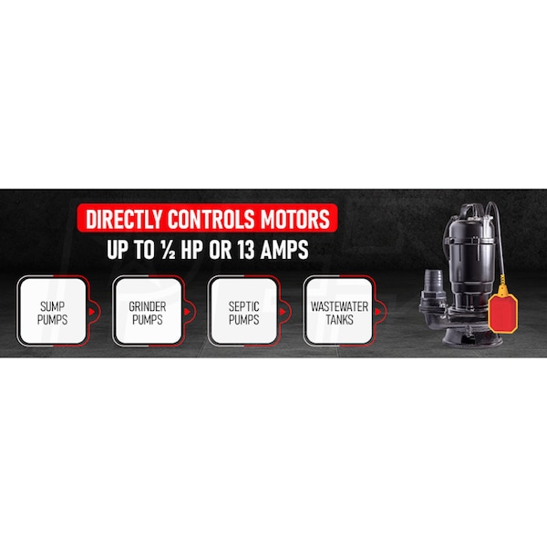 • Controls pumps up to 1/2 HP