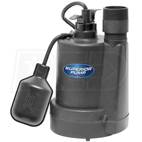 Superior Pump 92250 - 1/4 HP Thermoplastic Submersible Sump Pump w/ Tether Float Switch