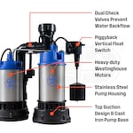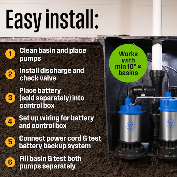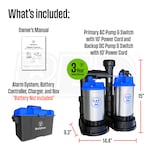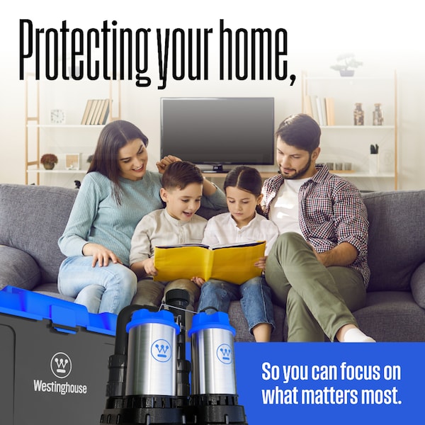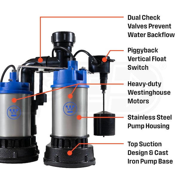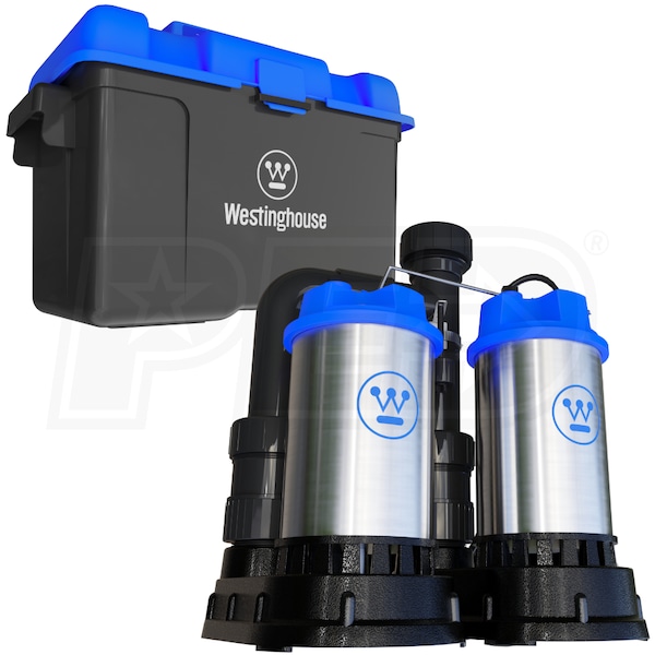 - Westinghouse 1/2 HP Combination Primary & Backup Sump Pump System