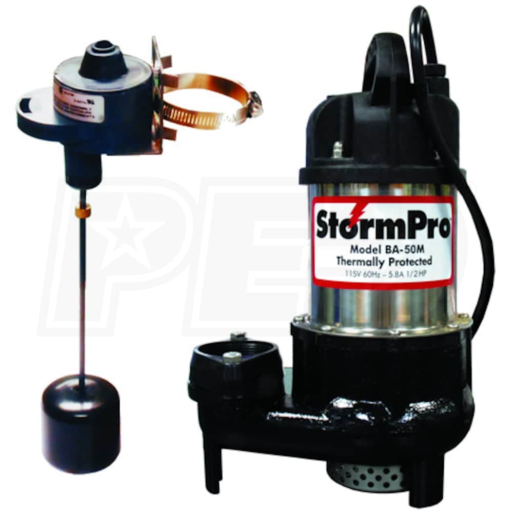 Jim, looking to understand the power consumption of the StormPro 1/2HP Model BA-50M pump. If its 1/2 HP at 120V, that converts to 375watts or 3.1 Amps by standard conversion. The pump is rated at 5.1 amps constant which converts to 615 watts at 120V or over 3/4HP. I'm trying to understand the difference and which one is accurate representation of power consumption.