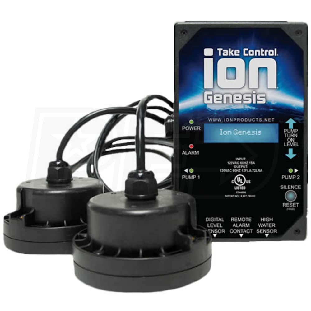 iON Genesis Programmable Smart Sensing Sump Pump Controller System w/ 20' Switch & 10' Power Cords